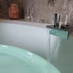 Antica Roccia A Calascio Con Idromassaggio villa includes a bathroom with a bidet, a hot tub, and a shower. Bathrooms also feature hair dryers for added comfort.